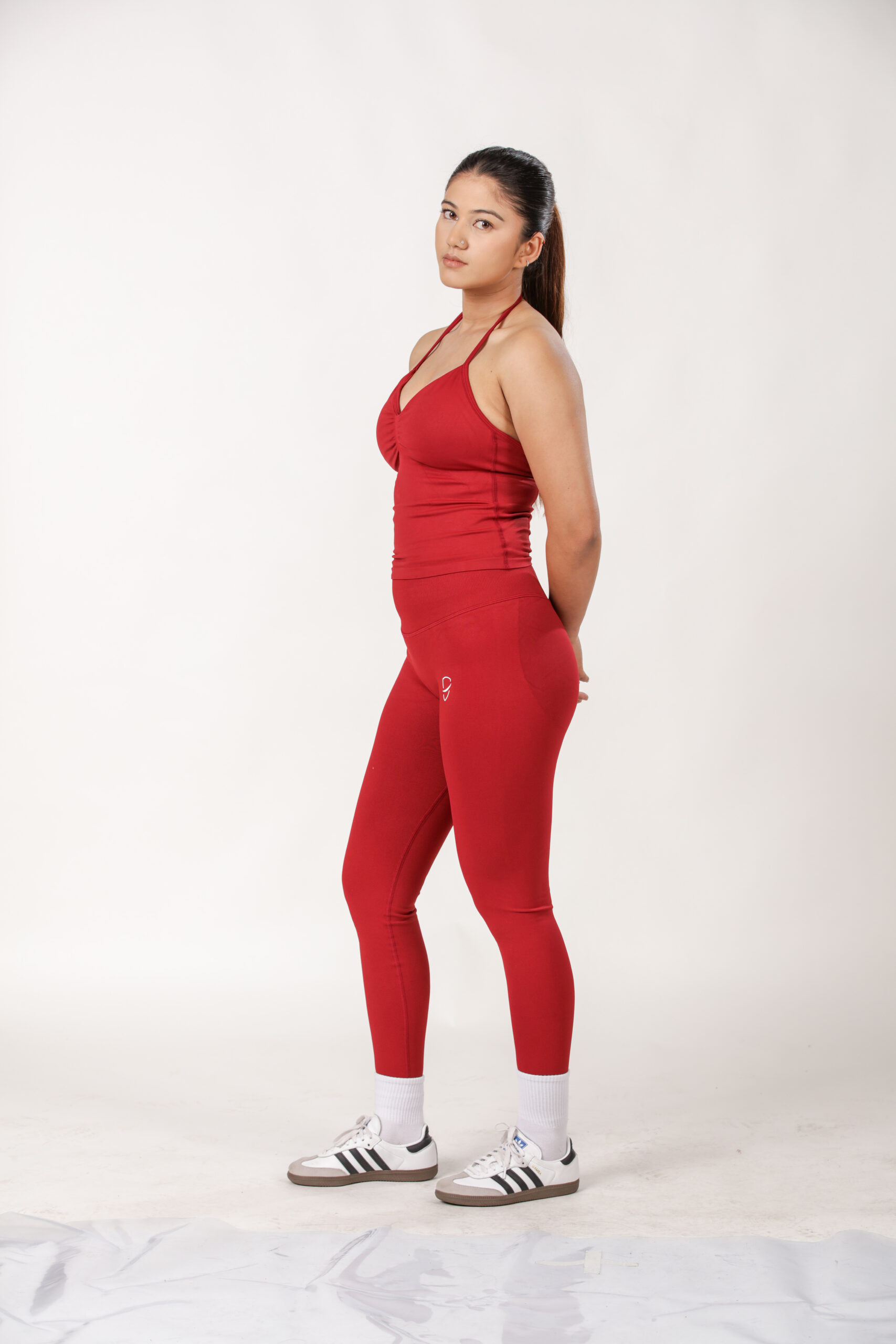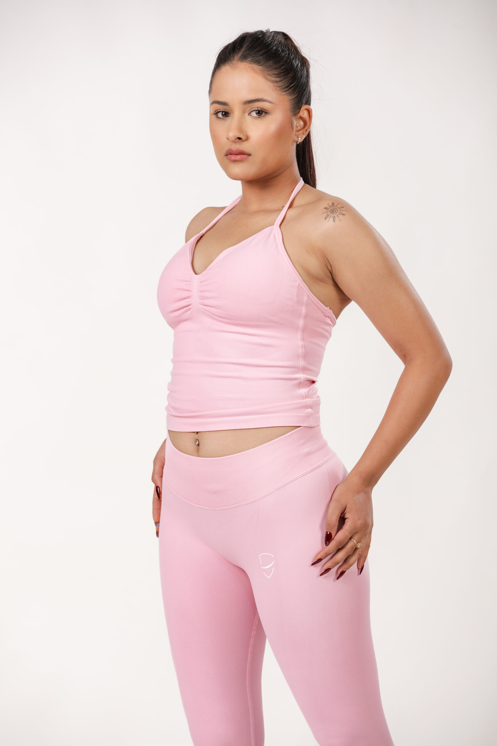 Halter neck top and leggings set in a soft, stretchy, and comfortable polyamide-elastane blend for a sculpted, supportive, second-skin fit.