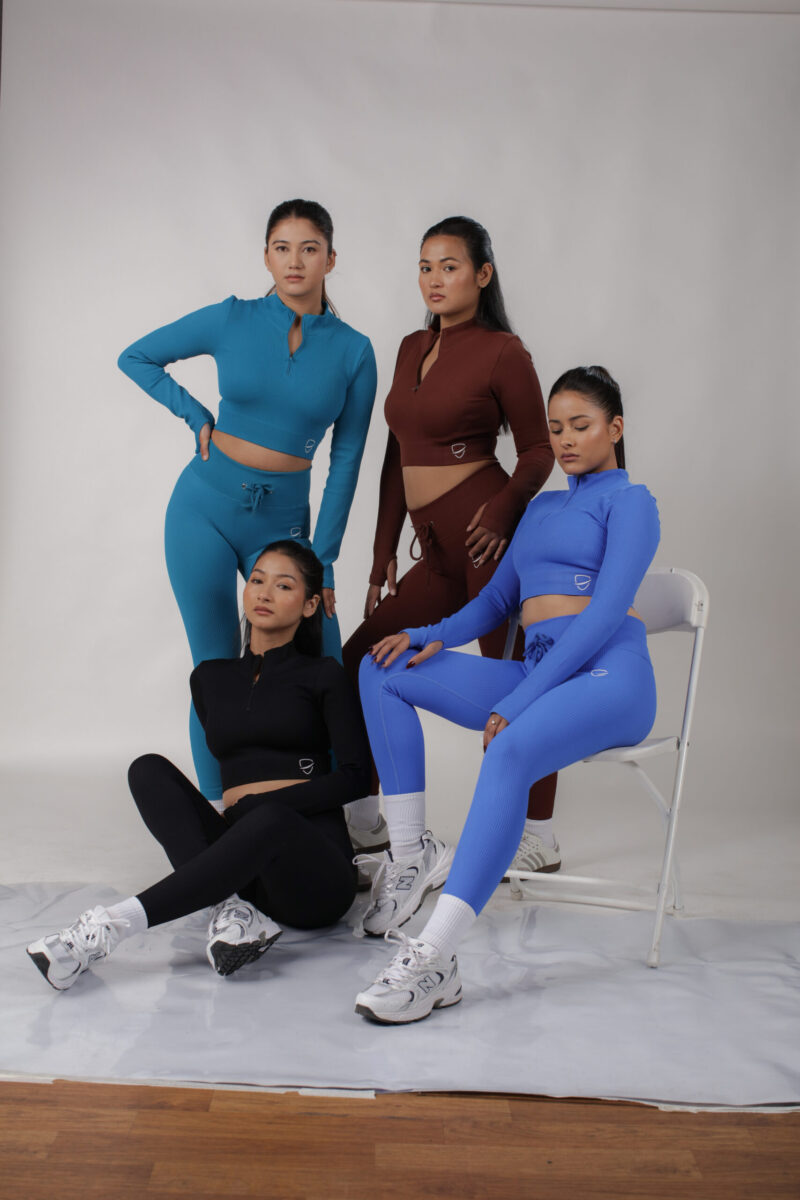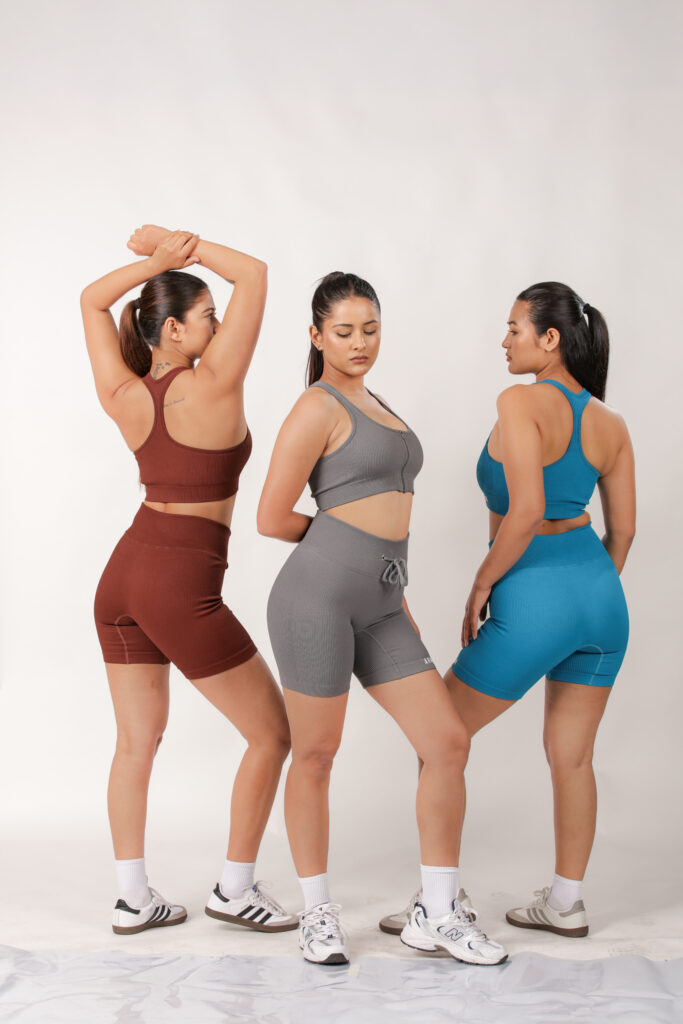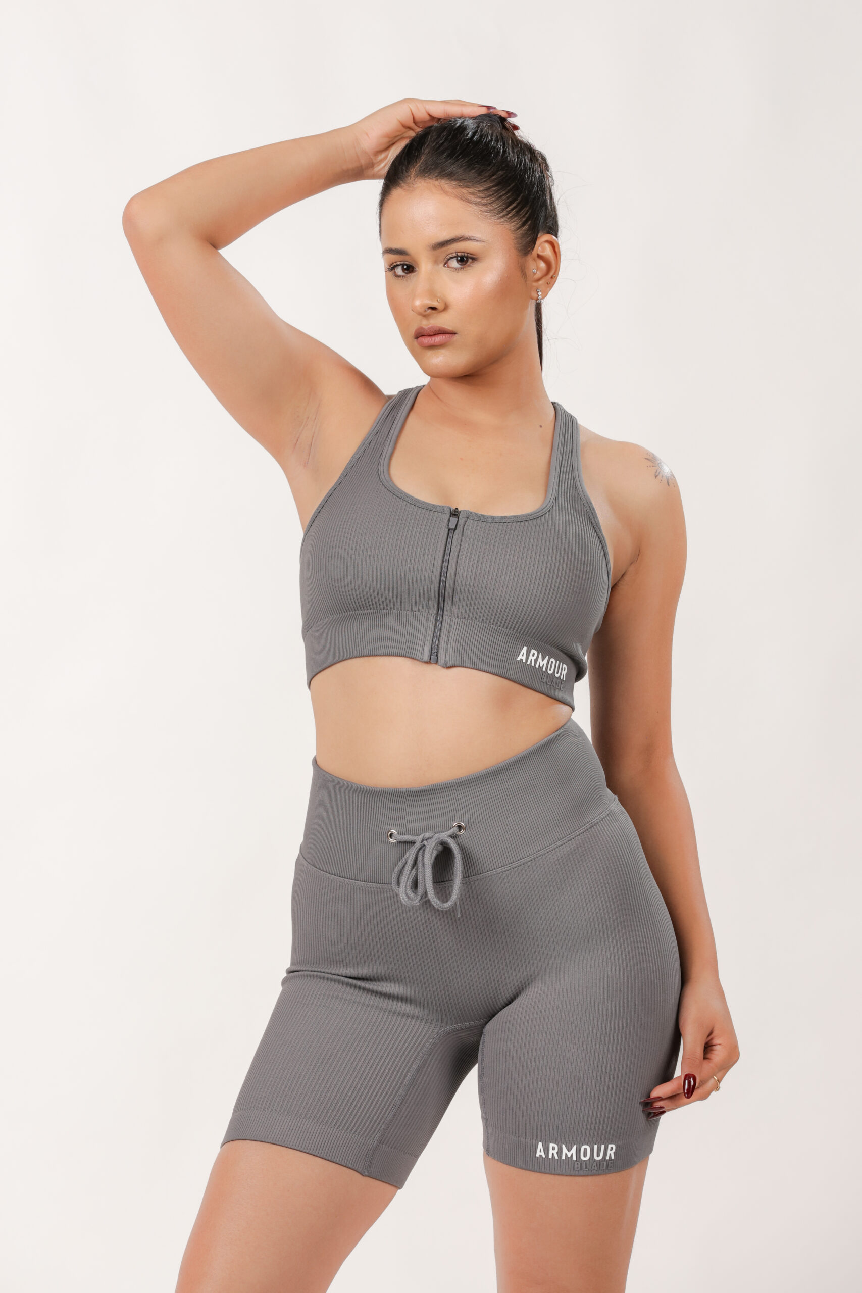 Zip-front sports bra and drawstring leggings set made from a stretchy, comfortable polyamide-elastane blend for a supportive, flexible fit.