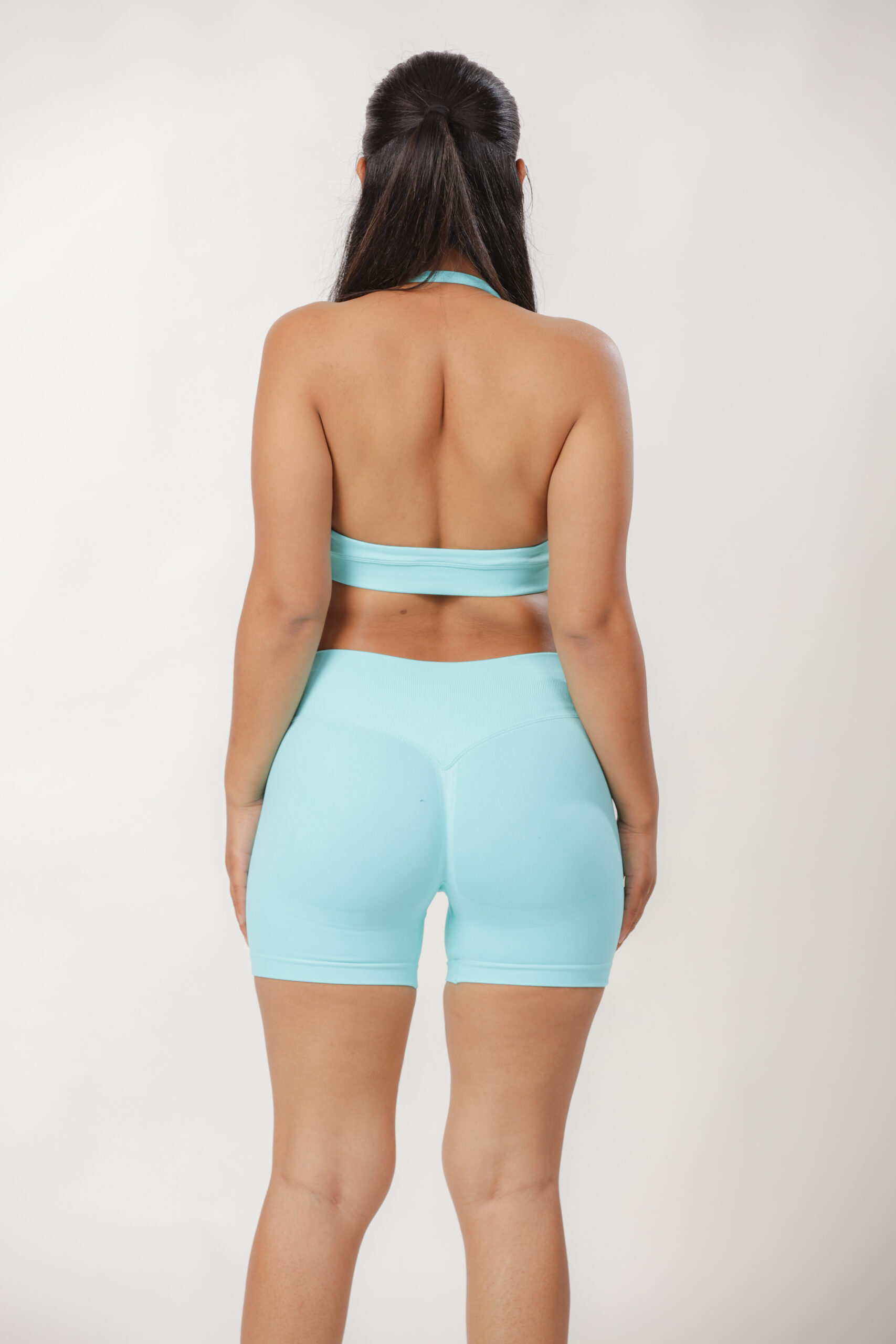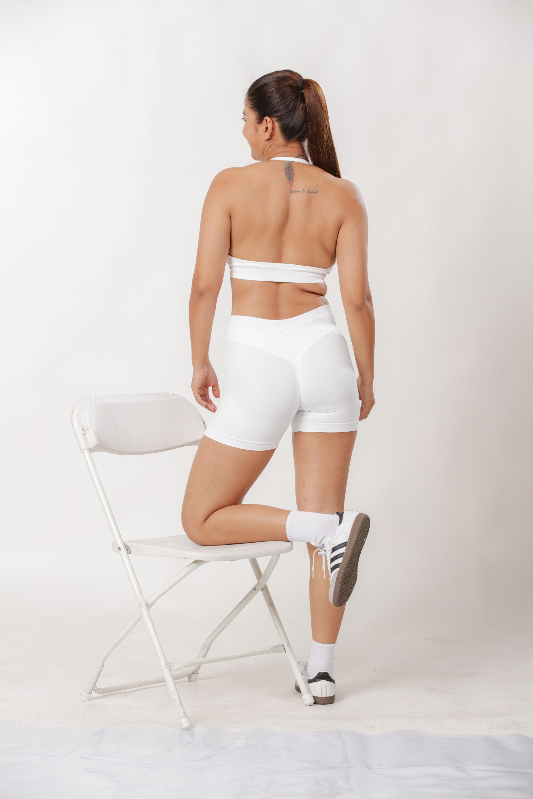 Backless halter neck top and shorts set crafted from a soft, stretchy, and comfortable polyamide-elastane blend, designed to enhance your natural shape with a flattering, supportive and flexible fit.